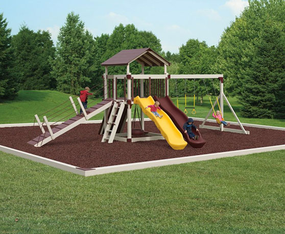 Our standard swing set height options are five feet, seven feet, and nine feet tall. Many of our sets feature multiple towers at different heights as well. If you’re shopping for a specific height for your set, check out some of our most popular swing set models separated by height: