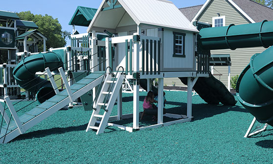 Read more about our standout warranty right here. - Puts a Serious Focus on Safety — This is a major responsibility for every swing set manufacturer and builder of kids’ play equipment. When your products are the center of children’s high-energy play, they need to be built with safety in mind. We build our sets with ultra-reinforced swing beams that are rated to handle 2,000 lbs. of pressure, and we double reinforce the corners on our sets with steel fasteners — rather than wooden lag screws. To maximize safety during play, we also offer a line of matching high quality vinyl playground mulch.