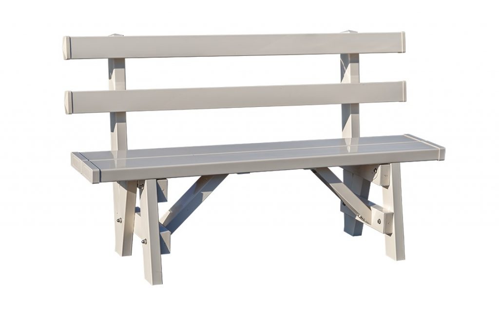 Made from the same quality material design concept as our popular play sets, our new vinyl bench with back rest is built to last. We only use pressure-treated lumber instead of untreated wood. That way, our backyard benches will withstand the seasons without fading or cracking. We cover the lumber with vinyl for combined strength of wood and easy care. There is no risk of splinters when the wood is covered in durable vinyl. Plus, these benches for garden or playground never need painting or finishing. Cleaning is as simple as a spray down with the hose to keep both your new bench and play set looking great.