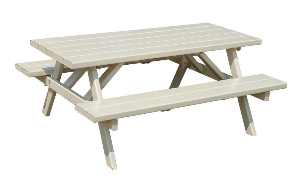 A picnic table is a perfect addition to your back yard. The picnic table has a familiar, classic design that will make you feel as though you’re hanging out at the park. We offer ours in three shades: white, off-white and clay. A white vinyl picnic table, for example, accomplishes several things that your familiar wooden picnic table doesn’t have. First, the vinyl helps keep the wood off the ground. That means that it won’t be as exposed to dirt, soil, and water, which will keep your picnic table in great shape longer. Next, the vinyl design isn’t out of place in even the most refined back yard. If you have a comfortable feel to your backyard, the picnic table will fit right in. Finally, vinyl picnic tables are smoother and more comfortable to sit on than wood alone. There’s no worry over splinters with this design!