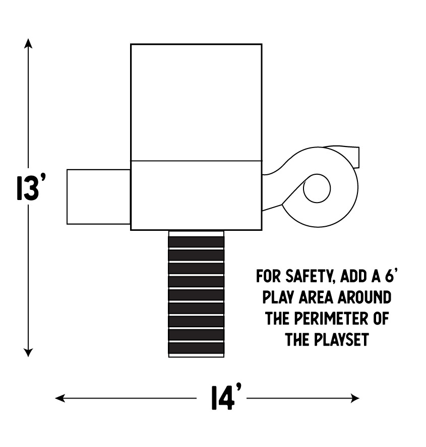 For safety, add a 6′ player area around the perimeter of the playset